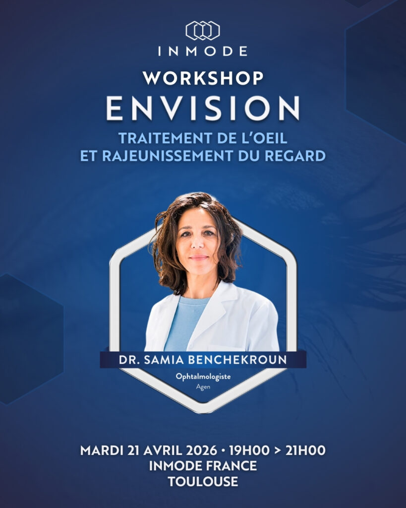 Envision by InMode est une plateforme non chirurgicale innovante, spécialement conçue pour traiter les causes sous-jacentes de la sécheresse oculaire, notamment la dysfonction des glandes de Meibomius (DGM). Cette technologie de pointe combine plusieurs modalités thérapeutiques programmables qui agissent en synergie pour offrir des traitements de précision dans la région périorbitaire délicate.
